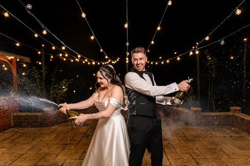 To finish the night, we went outside for some fun champagne spray photos, which was the perfect ending to a brilliant wedding day at Highley Manor.
