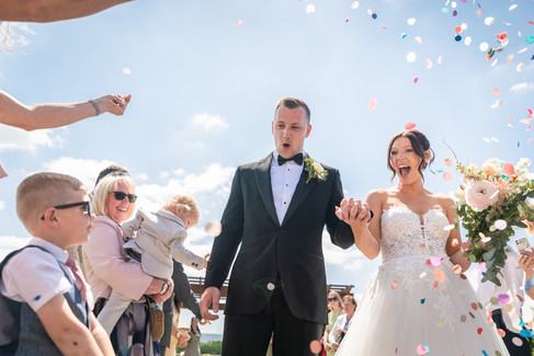 The ceremony took place indoors and was full of emotion, smiles, and laughter. After the ceremony, everyone went outside for confetti, which looked amazing in the summer sunshine. We then captured group photos with their friends and family, keeping everything fun and relaxed.